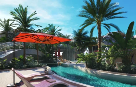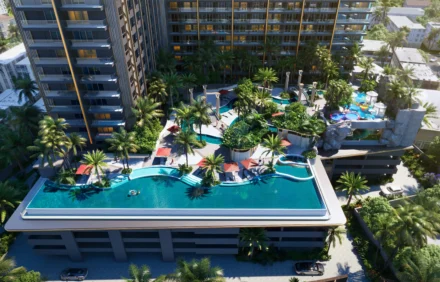 Designed with sophistication and comfort in mind, this condominium offers a wealth of facilities and amenities. Residents can enjoy an Olympic-length swimming pool with an artificial beach, a lazy river, multiple Jacuzzis, waterfalls, and whirlpools. A state-of-the-art fitness center, a private cinema room, and a golf simulator add to the lifestyle appeal. The rooftop entertainment complex is a true highlight, featuring a 200-meter infinity pool that encircles the entire rooftop, a beach club, fine dining restaurants, a skywalk, and a selection of exclusive bars and lounges that take luxury to new heights.