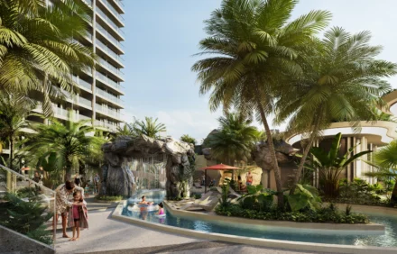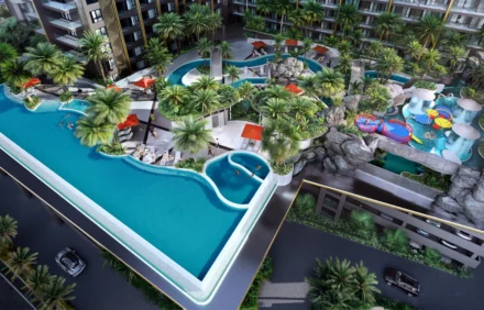 Designed with sophistication and comfort in mind, this condominium offers a wealth of facilities and amenities. Residents can enjoy an Olympic-length swimming pool with an artificial beach, a lazy river, multiple Jacuzzis, waterfalls, and whirlpools. A state-of-the-art fitness center, a private cinema room, and a golf simulator add to the lifestyle appeal. The rooftop entertainment complex is a true highlight, featuring a 200-meter infinity pool that encircles the entire rooftop, a beach club, fine dining restaurants, a skywalk, and a selection of exclusive bars and lounges that take luxury to new heights.